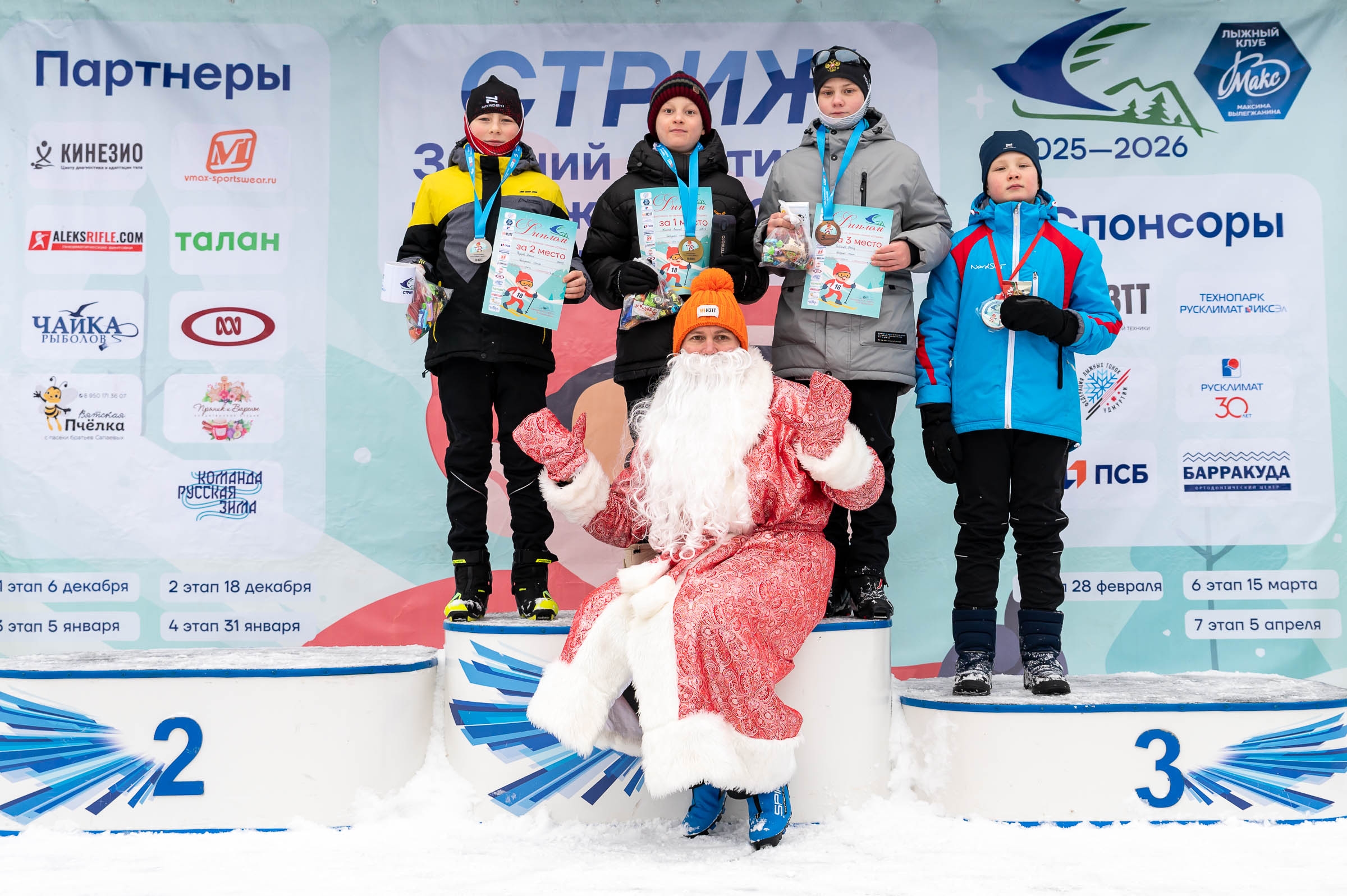 По итогам соревнований места на пьедестале почета распределились следующим образом:Юноши 2019-2020 г.р. Дистанция 500 м (классический стиль)